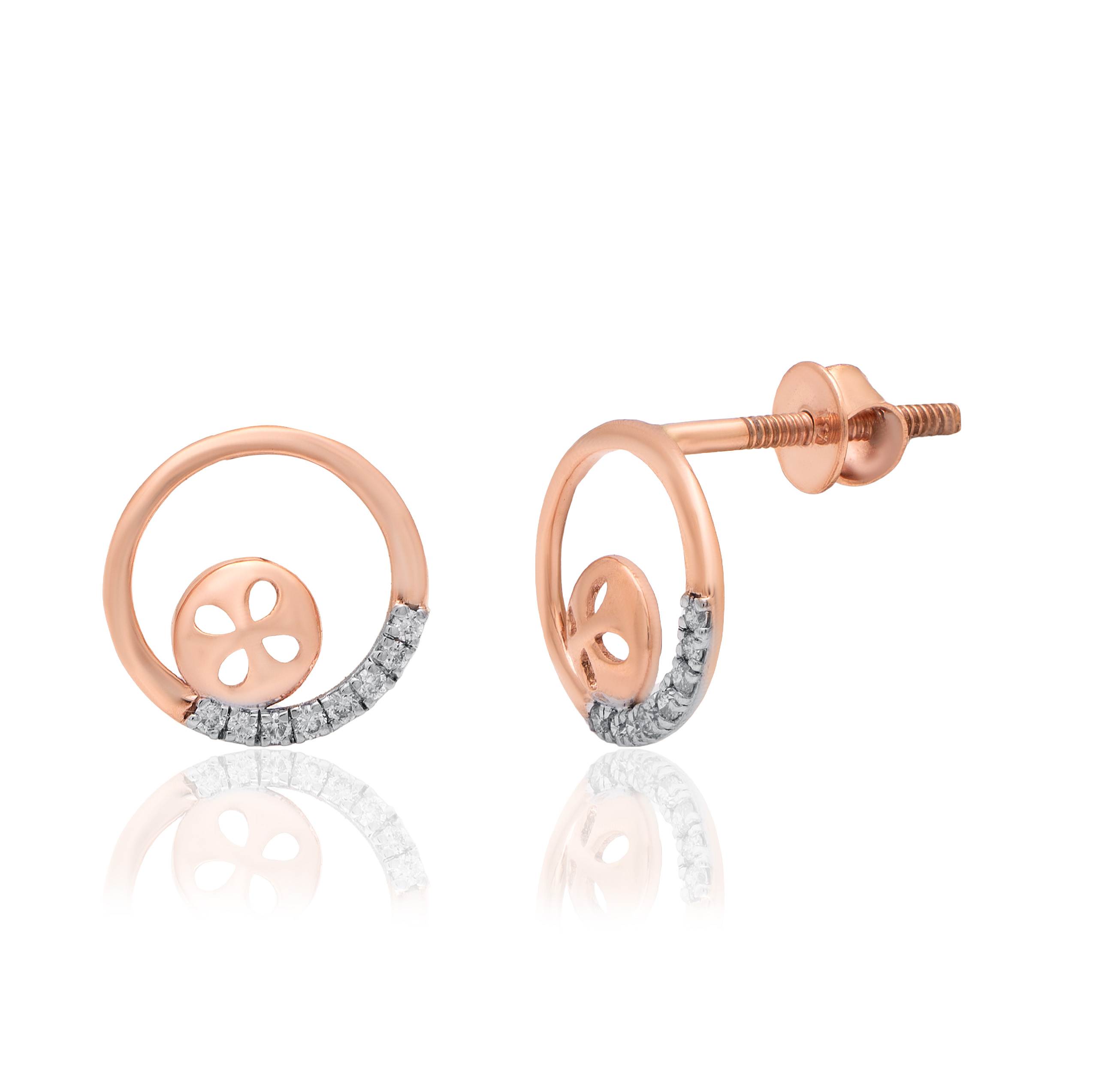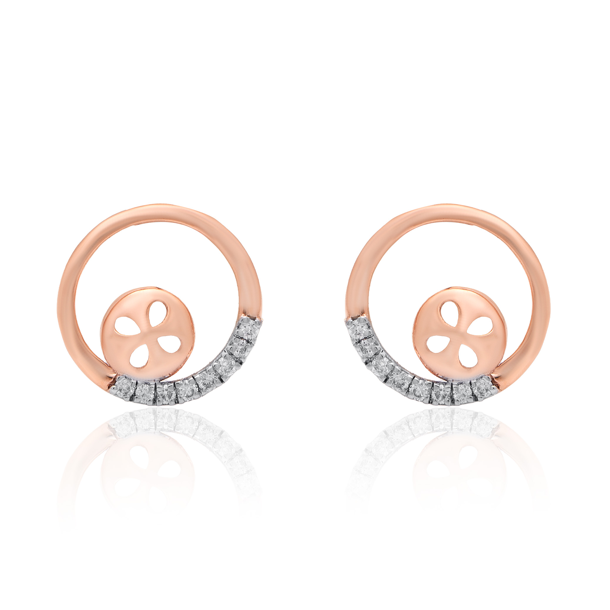 Stylish 14KT rose gold earrings enhanced with natural diamonds for graceful elegance.